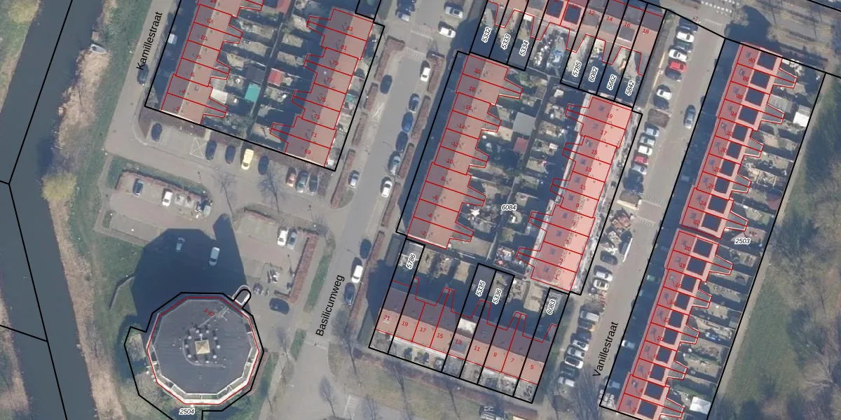 Het perceel waarop Basilicumweg 4 staat heeft een oppervlakte van 3007 m². Dit is een zeer groot perceel. De perceeloppervlakte wordt geregistreerd door het Kadaster. Gedetailleerde informatie over de maten van dit perceel kunt u vinden in het rapport Kadastrale kaart met maatvoering van Basilicumweg 4.