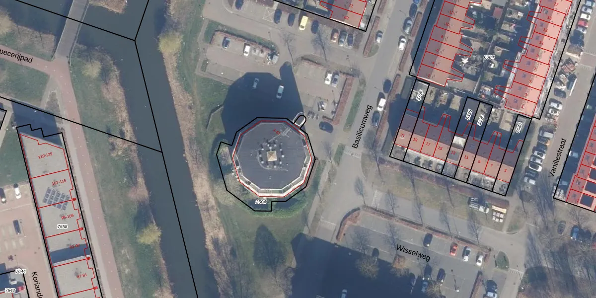 Basilicumweg 43 is gelegen op kadastraal perceel AMR04O2504. Deze kadastrale aanduiding is uniek en wordt gebruikt door het Kadaster om eigendomsrechten en andere zakelijke rechten vast te leggen. Het perceel maakt onderdeel uit van de kadastrale gemeente Almere.