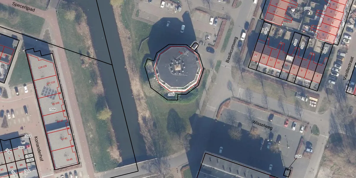 Basilicumweg 49 is gelegen op kadastraal perceel AMR04O2504. Deze kadastrale aanduiding is uniek en wordt gebruikt door het Kadaster om eigendomsrechten en andere zakelijke rechten vast te leggen. Het perceel maakt onderdeel uit van de kadastrale gemeente Almere.
