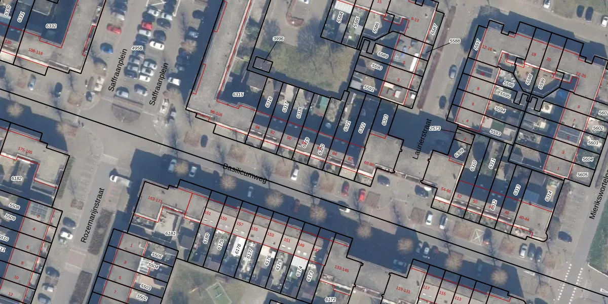 Basilicumweg 88 is gelegen op kadastraal perceel AMR04O6319. Deze kadastrale aanduiding is uniek en wordt gebruikt door het Kadaster om eigendomsrechten en andere zakelijke rechten vast te leggen. Het perceel maakt onderdeel uit van de kadastrale gemeente Almere.