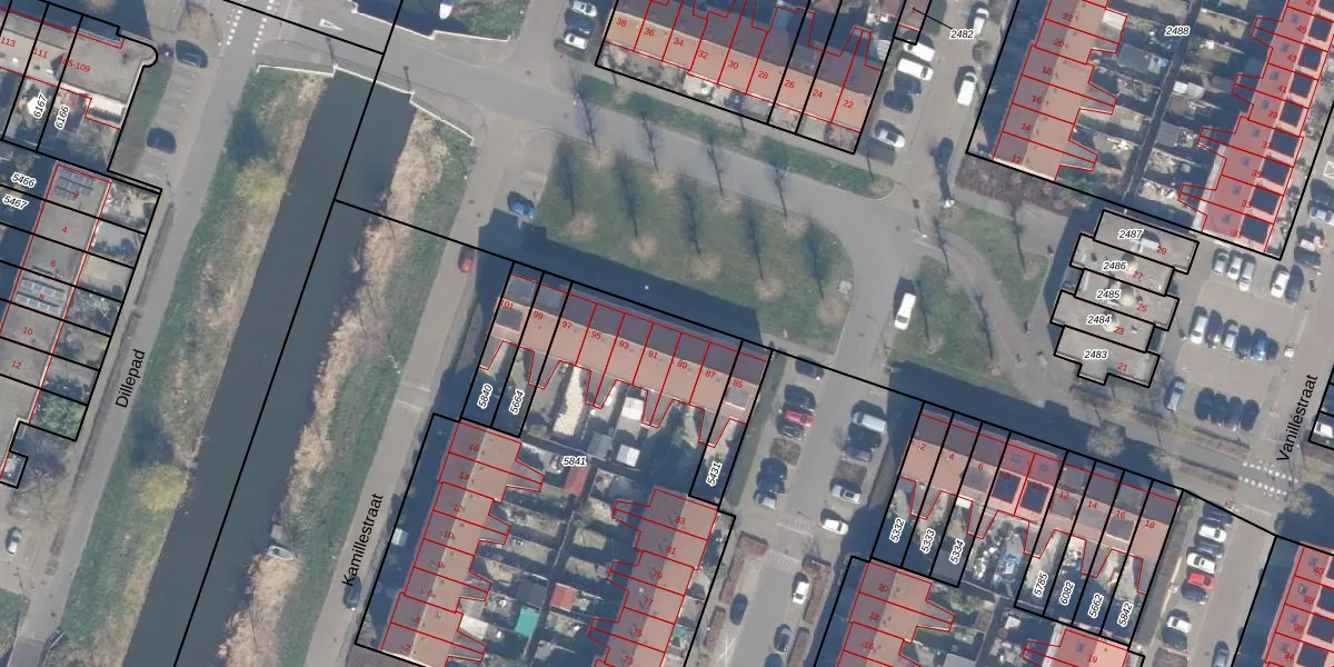 Het perceel waarop Basilicumweg 91 staat heeft een oppervlakte van 2442 m². Dit is een zeer groot perceel. De perceeloppervlakte wordt geregistreerd door het Kadaster. Gedetailleerde informatie over de maten van dit perceel kunt u vinden in het rapport Kadastrale kaart met maatvoering van Basilicumweg 91.