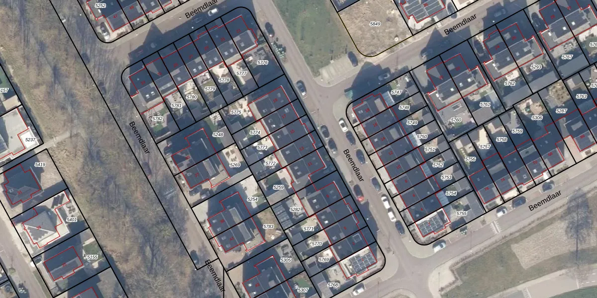 Het perceel waarop Beemdlaar 13 staat heeft een oppervlakte van 153 m². Dit is een middelgroot perceel. De perceeloppervlakte wordt geregistreerd door het Kadaster. Gedetailleerde informatie over de maten van dit perceel kunt u vinden in het rapport Kadastrale kaart met maatvoering van Beemdlaar 13.
