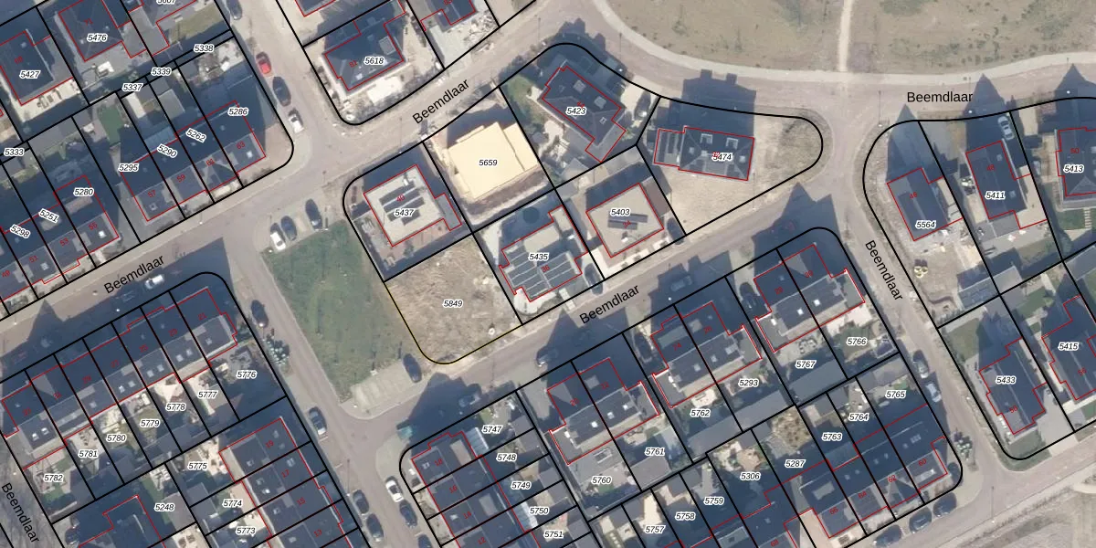 Gebruik de zoekbalk of klik op een perceel voor informatie over de adressen binnen dit perceel.