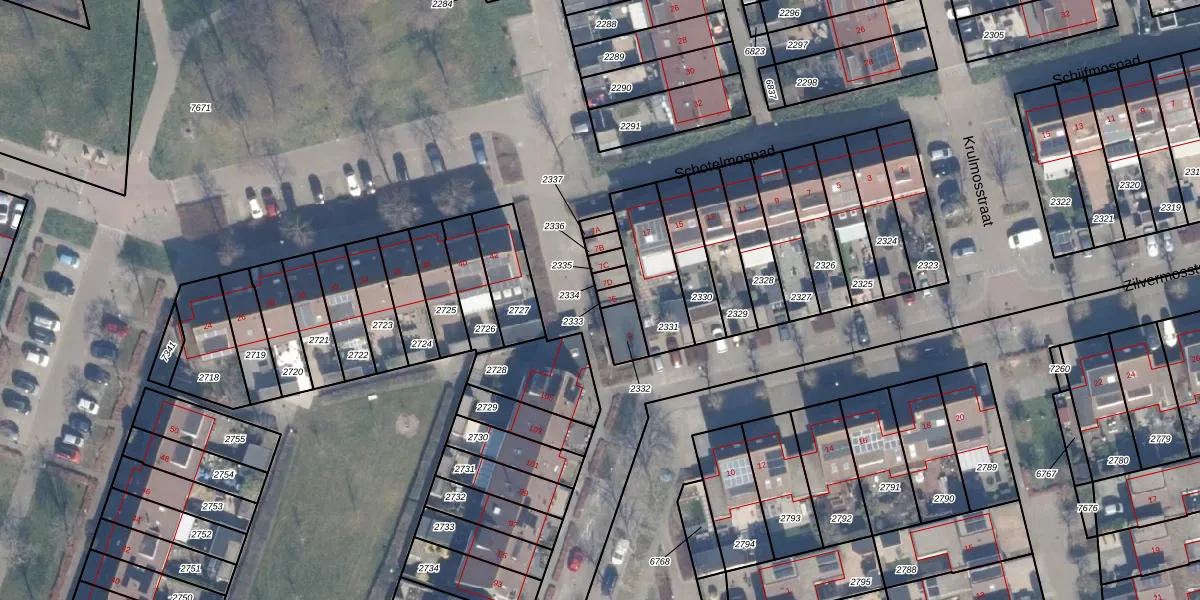 Het adres ligt op het perceel AMR04-O-2333, dat zich in de kadastrale gemeente Almere bevindt. Het perceel is kleiner dan gemiddeld in Almere. Het perceel is 18 m² groot, terwijl het gemiddelde ligt op 3327,75 m². Het kleinste perceel in de kadastrale gemeente is 0 m² groot. De grootste perceeloppervlakte is 32,12 km². Op het perceel bevinden zich geen andere adressen. De laatste wijziging in het de Basisregistratie Kadaster (BRK) was op 17-12-2008.