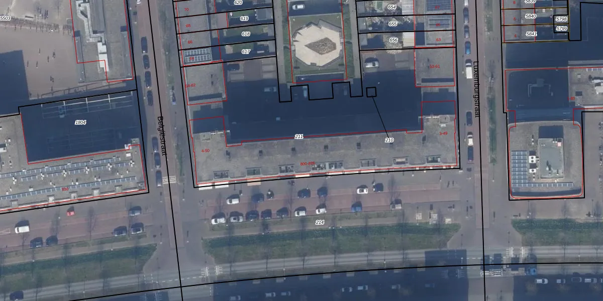 Het perceel waarop Belgiëstraat 14 staat heeft een oppervlakte van 3285 m². Dit is een zeer groot perceel. De perceeloppervlakte wordt geregistreerd door het Kadaster. Gedetailleerde informatie over de maten van dit perceel kunt u vinden in het rapport Kadastrale kaart met maatvoering van Belgiëstraat 14.