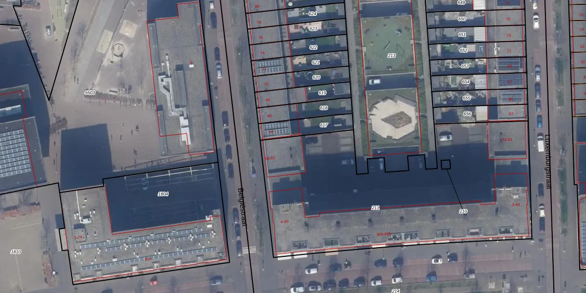 Het perceel waarop Belgiëstraat 56 staat heeft een oppervlakte van 3285 m². Dit is een zeer groot perceel. De perceeloppervlakte wordt geregistreerd door het Kadaster. Gedetailleerde informatie over de maten van dit perceel kunt u vinden in het rapport Kadastrale kaart met maatvoering van Belgiëstraat 56.