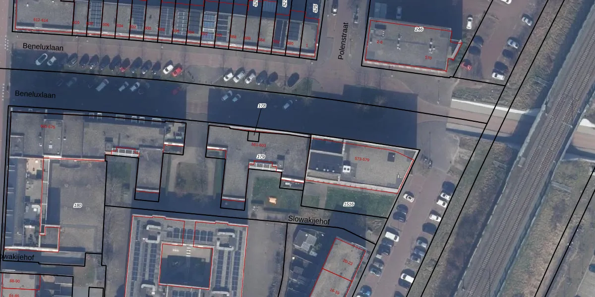 Het perceel waarop Beneluxlaan 595 staat heeft een oppervlakte van 568 m². Dit is een groot perceel. De perceeloppervlakte wordt geregistreerd door het Kadaster. Gedetailleerde informatie over de maten van dit perceel kunt u vinden in het rapport Kadastrale kaart met maatvoering van Beneluxlaan 595.