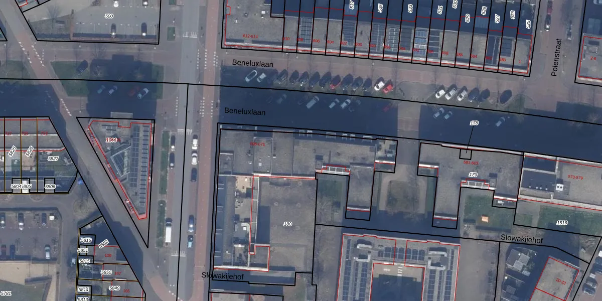 Het perceel waarop Beneluxlaan 611 staat heeft een oppervlakte van 2074 m². Dit is een zeer groot perceel. De perceeloppervlakte wordt geregistreerd door het Kadaster. Gedetailleerde informatie over de maten van dit perceel kunt u vinden in het rapport Kadastrale kaart met maatvoering van Beneluxlaan 611.