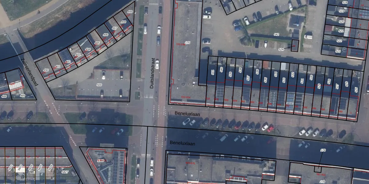 Het perceel waarop Beneluxlaan 614 staat heeft een oppervlakte van 1177 m². Dit is een zeer groot perceel. De perceeloppervlakte wordt geregistreerd door het Kadaster. Gedetailleerde informatie over de maten van dit perceel kunt u vinden in het rapport Kadastrale kaart met maatvoering van Beneluxlaan 614.