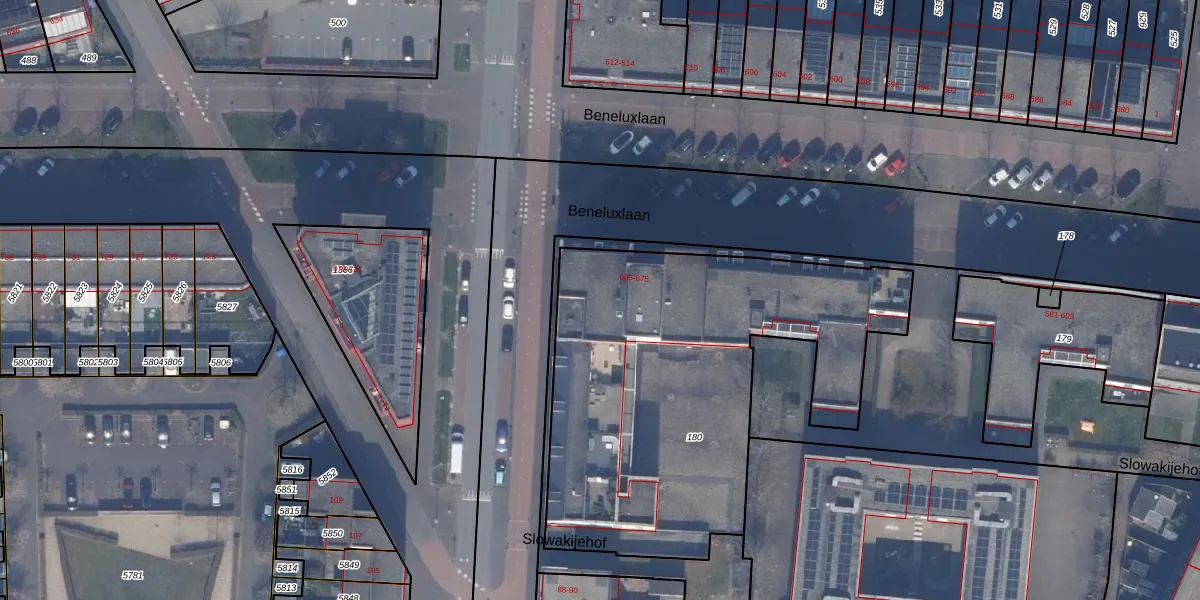 Het perceel waarop Beneluxlaan 645 staat heeft een oppervlakte van 2074 m². Dit is een zeer groot perceel. De perceeloppervlakte wordt geregistreerd door het Kadaster. Gedetailleerde informatie over de maten van dit perceel kunt u vinden in het rapport Kadastrale kaart met maatvoering van Beneluxlaan 645.