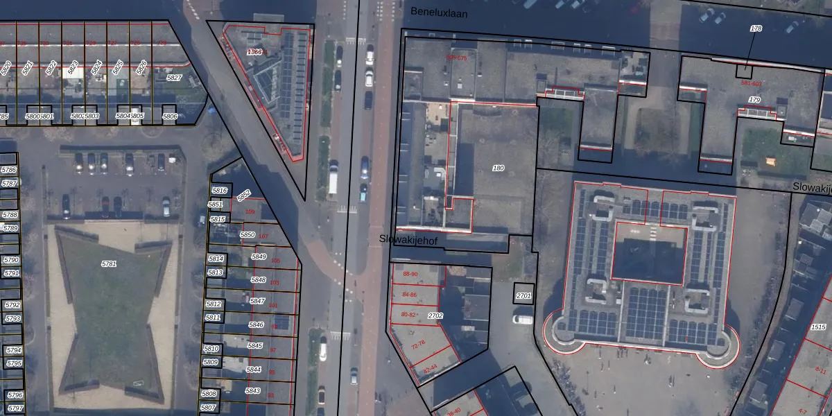 Het perceel waarop Beneluxlaan 669 staat heeft een oppervlakte van 2074 m². Dit is een zeer groot perceel. De perceeloppervlakte wordt geregistreerd door het Kadaster. Gedetailleerde informatie over de maten van dit perceel kunt u vinden in het rapport Kadastrale kaart met maatvoering van Beneluxlaan 669.