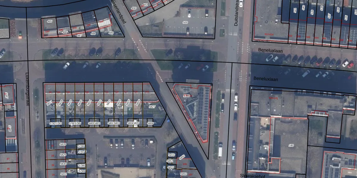 Het perceel waarop Beneluxlaan 703 staat heeft een oppervlakte van 554 m². Dit is een groot perceel. De perceeloppervlakte wordt geregistreerd door het Kadaster. Gedetailleerde informatie over de maten van dit perceel kunt u vinden in het rapport Kadastrale kaart met maatvoering van Beneluxlaan 703.