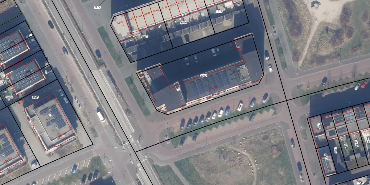 Het adres ligt op het perceel AMR04-W-3351, dat zich in de kadastrale gemeente Almere bevindt. De gemiddelde perceelgrootte in Almere is 3327,75 m². Dit perceel is kleiner: de perceeloppervlakte bedraagt 1655 m². Het kleinste perceel in de kadastrale gemeente is 0 m² groot. De grootste perceeloppervlakte is 32,12 km². Op het perceel zijn 47 adressen aanwezig. In de Basisregistratie Kadaster (BRK) werden de grenzen van het perceel geregistreerd op 09-01-2019.