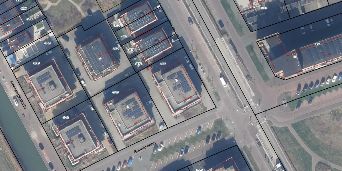 Beneluxlaan 806 is gelegen op kadastraal perceel AMR04W3905. Deze kadastrale aanduiding is uniek en wordt gebruikt door het Kadaster om eigendomsrechten en andere zakelijke rechten vast te leggen. Het perceel maakt onderdeel uit van de kadastrale gemeente Almere.