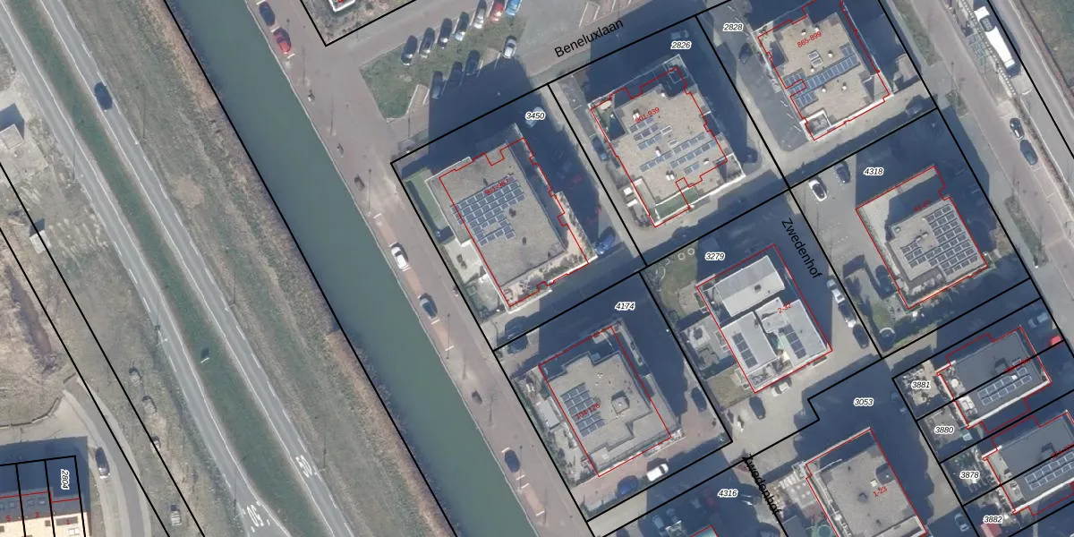 Het perceel waarop Beneluxlaan 945 staat heeft een oppervlakte van 1295 m². Dit is een zeer groot perceel. De perceeloppervlakte wordt geregistreerd door het Kadaster. Gedetailleerde informatie over de maten van dit perceel kunt u vinden in het rapport Kadastrale kaart met maatvoering van Beneluxlaan 945.