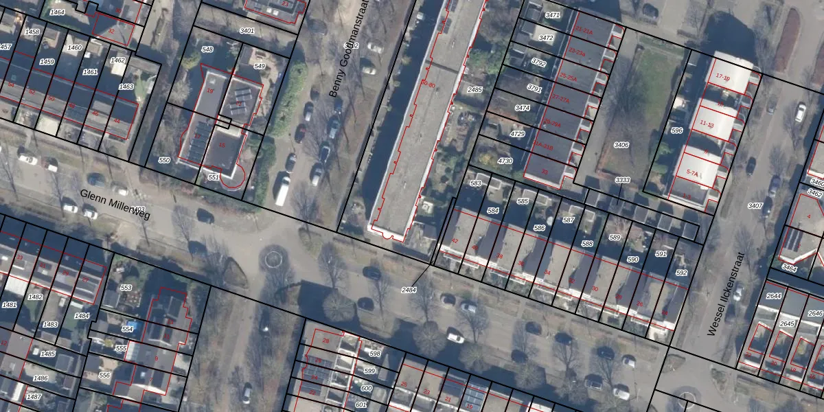 Het perceel waarop Benny Goodmanstraat 36 staat heeft een oppervlakte van 1996 m². Dit is een zeer groot perceel. De perceeloppervlakte wordt geregistreerd door het Kadaster. Gedetailleerde informatie over de maten van dit perceel kunt u vinden in het rapport Kadastrale kaart met maatvoering van Benny Goodmanstraat 36.