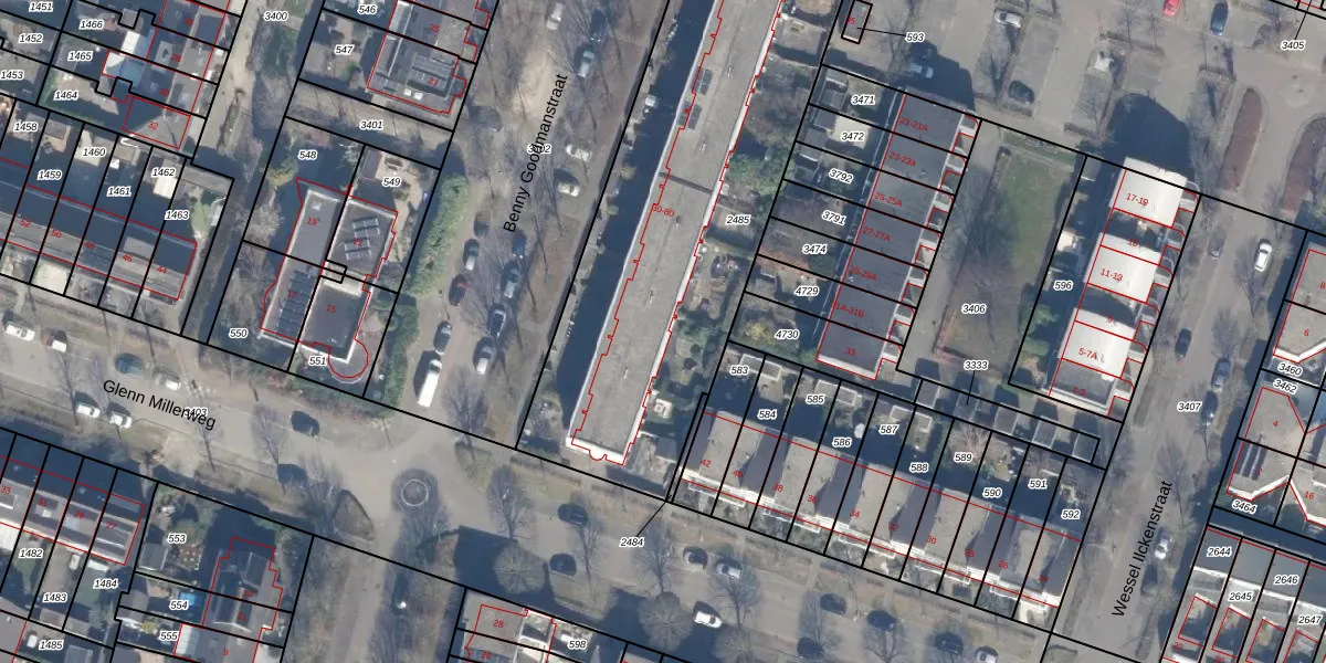 Het perceel waarop Benny Goodmanstraat 44 staat heeft een oppervlakte van 1996 m². Dit is een zeer groot perceel. De perceeloppervlakte wordt geregistreerd door het Kadaster. Gedetailleerde informatie over de maten van dit perceel kunt u vinden in het rapport Kadastrale kaart met maatvoering van Benny Goodmanstraat 44.