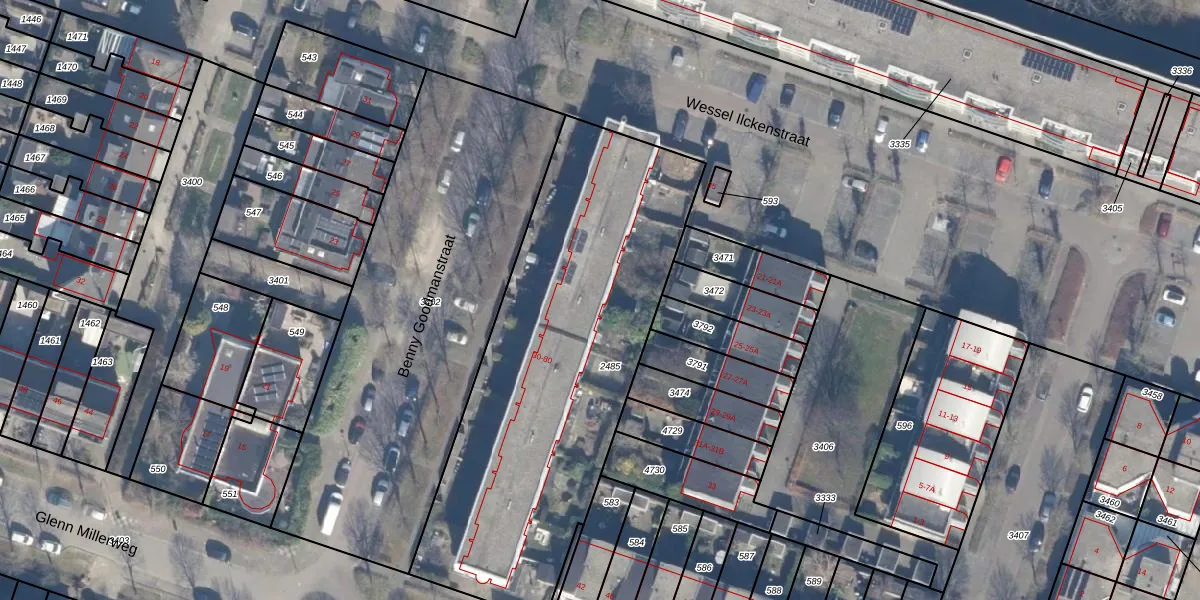 Het perceel waarop Benny Goodmanstraat 64 staat heeft een oppervlakte van 1996 m². Dit is een zeer groot perceel. De perceeloppervlakte wordt geregistreerd door het Kadaster. Gedetailleerde informatie over de maten van dit perceel kunt u vinden in het rapport Kadastrale kaart met maatvoering van Benny Goodmanstraat 64.