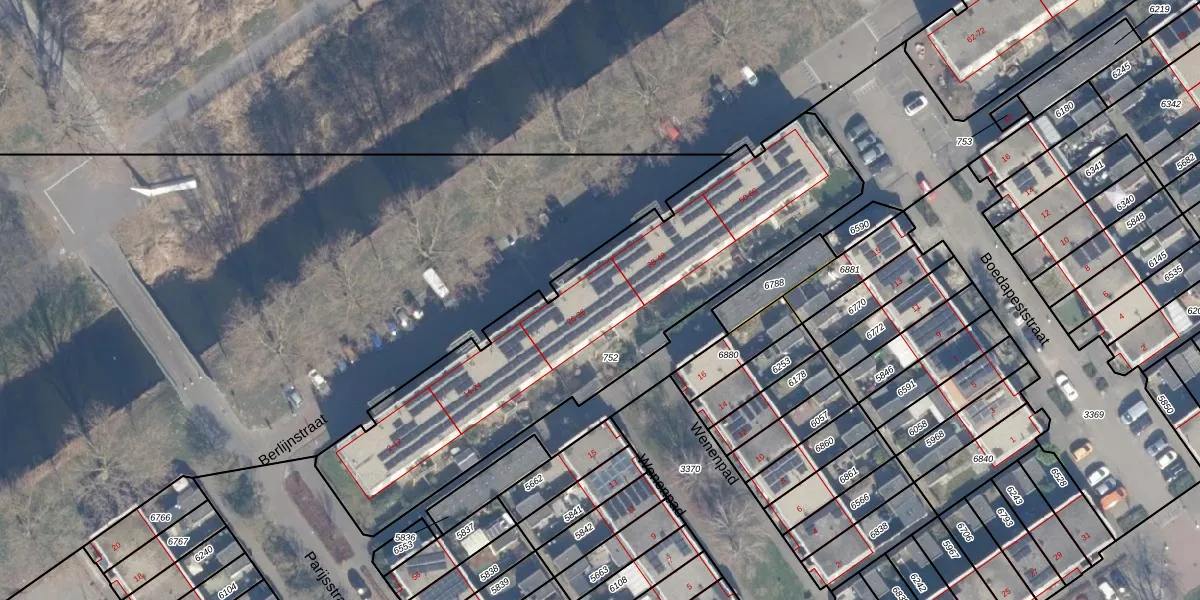 Het perceel waarop Berlijnstraat 30 staat heeft een oppervlakte van 1784 m². Dit is een zeer groot perceel. De perceeloppervlakte wordt geregistreerd door het Kadaster. Gedetailleerde informatie over de maten van dit perceel kunt u vinden in het rapport Kadastrale kaart met maatvoering van Berlijnstraat 30.
