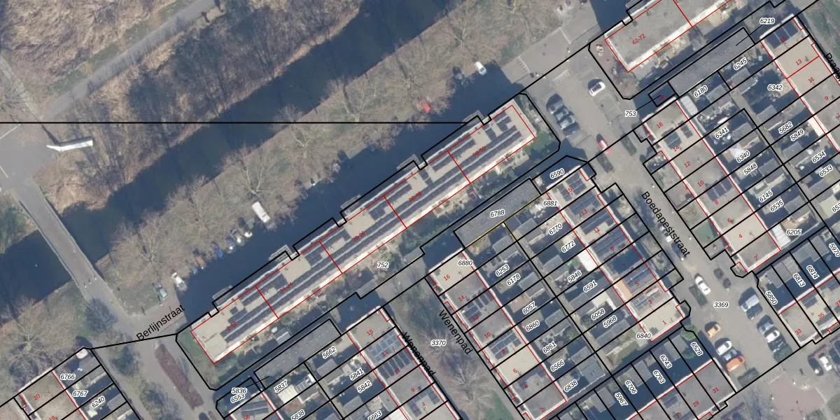 Het perceel waarop Berlijnstraat 48 staat heeft een oppervlakte van 1784 m². Dit is een zeer groot perceel. De perceeloppervlakte wordt geregistreerd door het Kadaster. Gedetailleerde informatie over de maten van dit perceel kunt u vinden in het rapport Kadastrale kaart met maatvoering van Berlijnstraat 48.