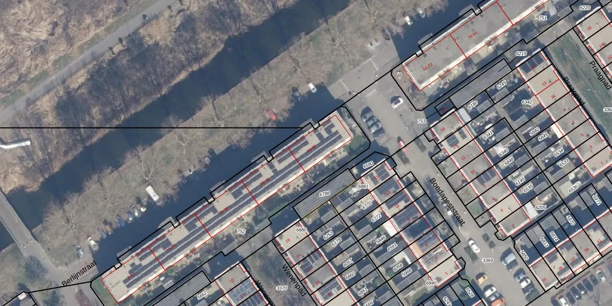 Het perceel waarop Berlijnstraat 52 staat heeft een oppervlakte van 1784 m². Dit is een zeer groot perceel. De perceeloppervlakte wordt geregistreerd door het Kadaster. Gedetailleerde informatie over de maten van dit perceel kunt u vinden in het rapport Kadastrale kaart met maatvoering van Berlijnstraat 52.