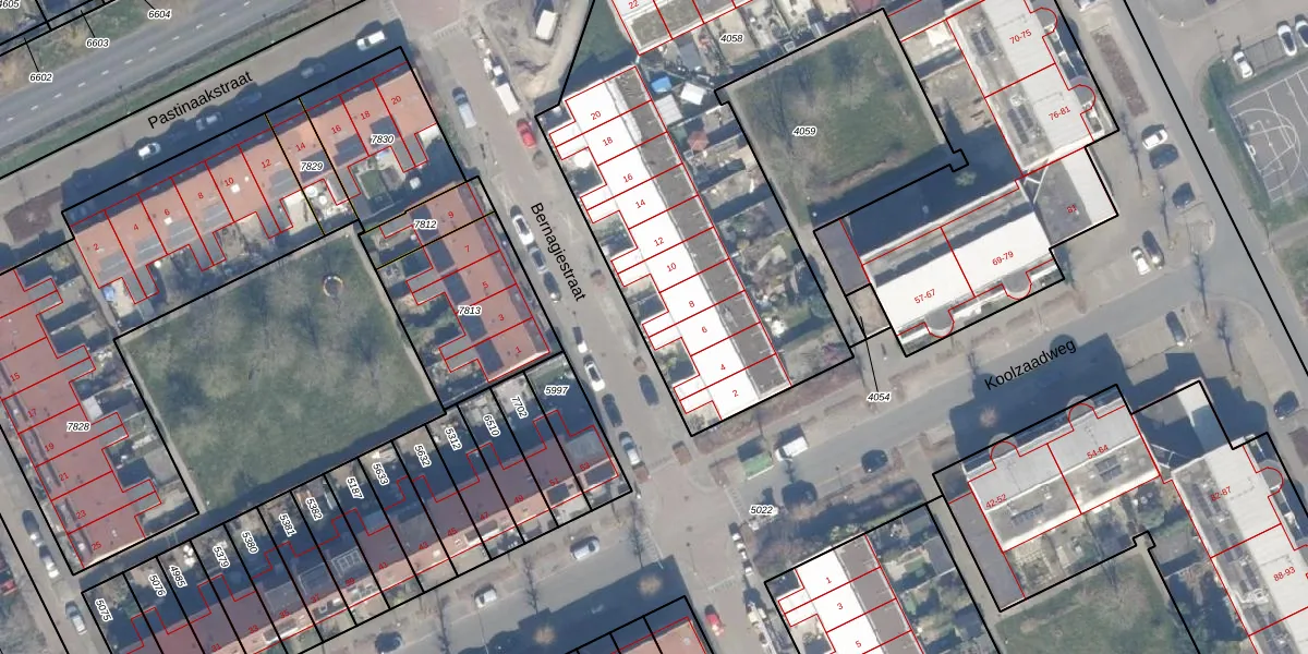 Het perceel waarop Bernagiestraat 8 staat heeft een oppervlakte van 4551 m². Dit is een zeer groot perceel. De perceeloppervlakte wordt geregistreerd door het Kadaster. Gedetailleerde informatie over de maten van dit perceel kunt u vinden in het rapport Kadastrale kaart met maatvoering van Bernagiestraat 8.