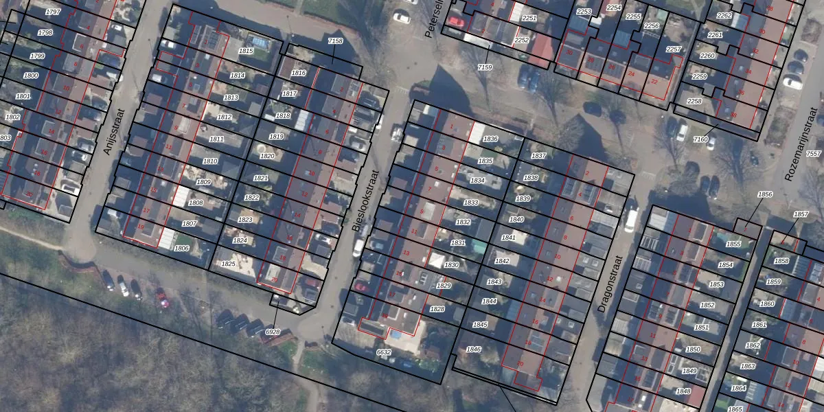 Het perceel waarop Bieslookstraat 9 staat heeft een oppervlakte van 152 m². Dit is een middelgroot perceel. De perceeloppervlakte wordt geregistreerd door het Kadaster. Gedetailleerde informatie over de maten van dit perceel kunt u vinden in het rapport Kadastrale kaart met maatvoering van Bieslookstraat 9.