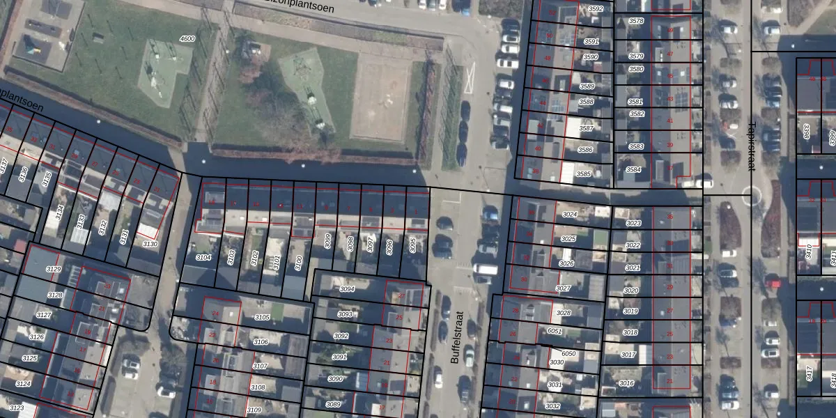Het perceel waarop Bizonplantsoen 1 staat heeft een oppervlakte van 132 m². Dit is een middelgroot perceel. De perceeloppervlakte wordt geregistreerd door het Kadaster. Gedetailleerde informatie over de maten van dit perceel kunt u vinden in het rapport Kadastrale kaart met maatvoering van Bizonplantsoen 1.