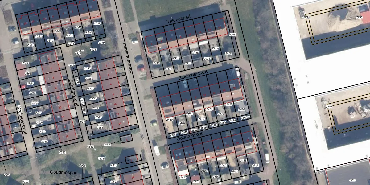 Gebruik de zoekbalk of klik op een perceel voor informatie over de adressen binnen dit perceel.