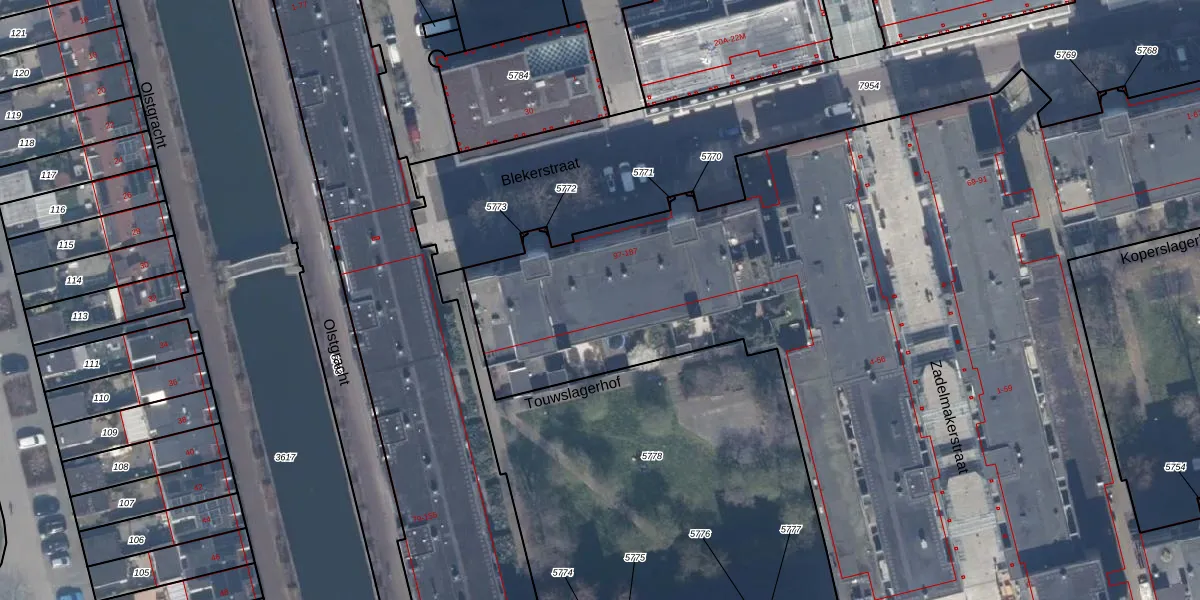 Het perceel waarop Blekerstraat 179 staat heeft een oppervlakte van 1,3 ha. Dit is een zeer groot perceel. De perceeloppervlakte wordt geregistreerd door het Kadaster. Gedetailleerde informatie over de maten van dit perceel kunt u vinden in het rapport Kadastrale kaart met maatvoering van Blekerstraat 179.