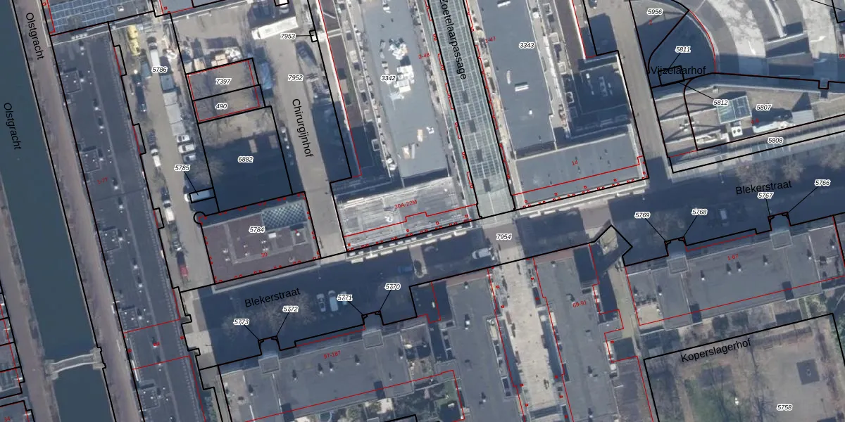 Het perceel waarop Blekerstraat 20-F staat heeft een oppervlakte van 2809 m². Dit is een zeer groot perceel. De perceeloppervlakte wordt geregistreerd door het Kadaster. Gedetailleerde informatie over de maten van dit perceel kunt u vinden in het rapport Kadastrale kaart met maatvoering van Blekerstraat 20-F.