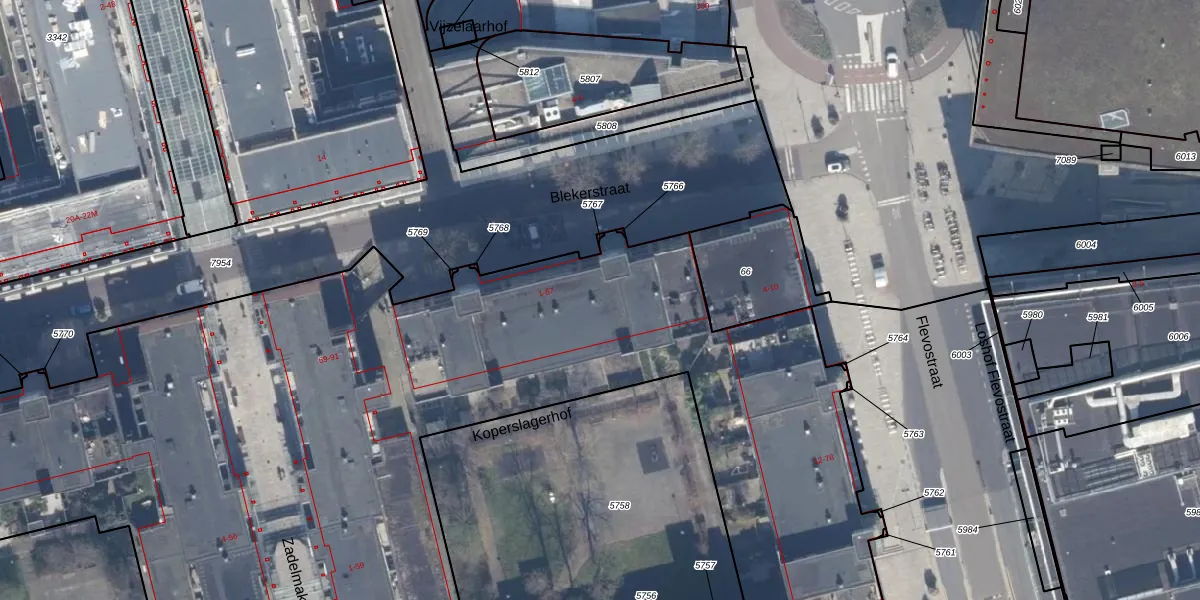 Blekerstraat 21 is gelegen op kadastraal perceel AMR04K5787. Deze kadastrale aanduiding is uniek en wordt gebruikt door het Kadaster om eigendomsrechten en andere zakelijke rechten vast te leggen. Het perceel maakt onderdeel uit van de kadastrale gemeente Almere.