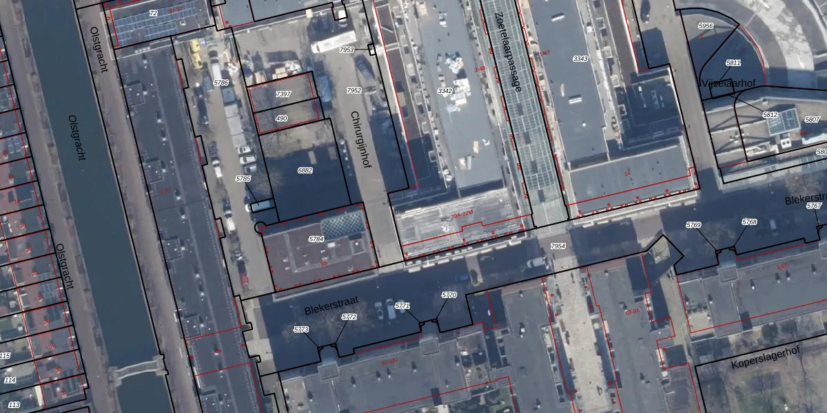 Het perceel waarop Blekerstraat 22-B staat heeft een oppervlakte van 2809 m². Dit is een zeer groot perceel. De perceeloppervlakte wordt geregistreerd door het Kadaster. Gedetailleerde informatie over de maten van dit perceel kunt u vinden in het rapport Kadastrale kaart met maatvoering van Blekerstraat 22-B.