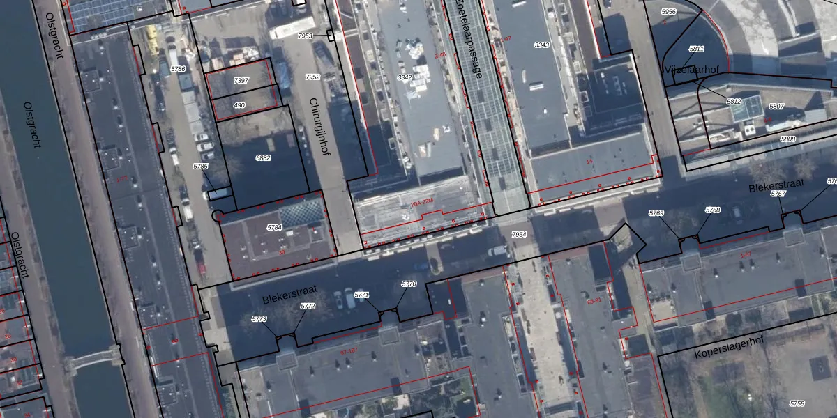 Het perceel waarop Blekerstraat 22-E staat heeft een oppervlakte van 2809 m². Dit is een zeer groot perceel. De perceeloppervlakte wordt geregistreerd door het Kadaster. Gedetailleerde informatie over de maten van dit perceel kunt u vinden in het rapport Kadastrale kaart met maatvoering van Blekerstraat 22-E.