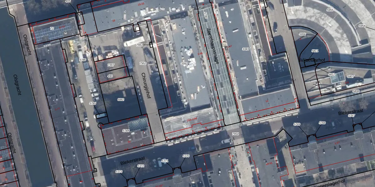 Het perceel waarop Blekerstraat 22-G staat heeft een oppervlakte van 2809 m². Dit is een zeer groot perceel. De perceeloppervlakte wordt geregistreerd door het Kadaster. Gedetailleerde informatie over de maten van dit perceel kunt u vinden in het rapport Kadastrale kaart met maatvoering van Blekerstraat 22-G.