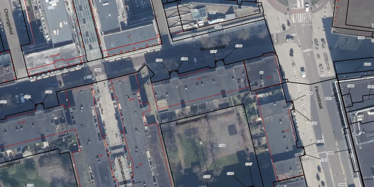 Blekerstraat 61 is gelegen op kadastraal perceel AMR04K5787. Deze kadastrale aanduiding is uniek en wordt gebruikt door het Kadaster om eigendomsrechten en andere zakelijke rechten vast te leggen. Het perceel maakt onderdeel uit van de kadastrale gemeente Almere.
