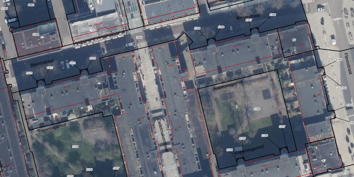 Blekerstraat 73 is gelegen op kadastraal perceel AMR04K5787. Deze kadastrale aanduiding is uniek en wordt gebruikt door het Kadaster om eigendomsrechten en andere zakelijke rechten vast te leggen. Het perceel maakt onderdeel uit van de kadastrale gemeente Almere.