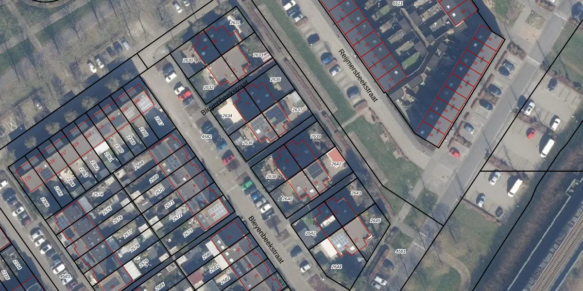 Bleyenbeekstraat 15 is gelegen op kadastraal perceel AMR04N2639. Deze kadastrale aanduiding is uniek en wordt gebruikt door het Kadaster om eigendomsrechten en andere zakelijke rechten vast te leggen. Het perceel maakt onderdeel uit van de kadastrale gemeente Almere.