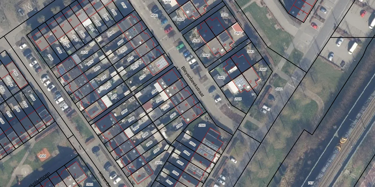 Bleyenbeekstraat 18 is gelegen op kadastraal perceel AMR04N2582. Deze kadastrale aanduiding is uniek en wordt gebruikt door het Kadaster om eigendomsrechten en andere zakelijke rechten vast te leggen. Het perceel maakt onderdeel uit van de kadastrale gemeente Almere.