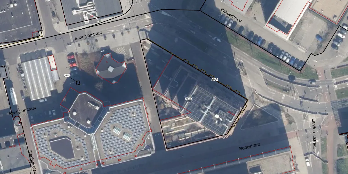 Het perceel waarop Bodestraat 243 staat heeft een oppervlakte van 2046 m². Dit is een zeer groot perceel. De perceeloppervlakte wordt geregistreerd door het Kadaster. Gedetailleerde informatie over de maten van dit perceel kunt u vinden in het rapport Kadastrale kaart met maatvoering van Bodestraat 243.