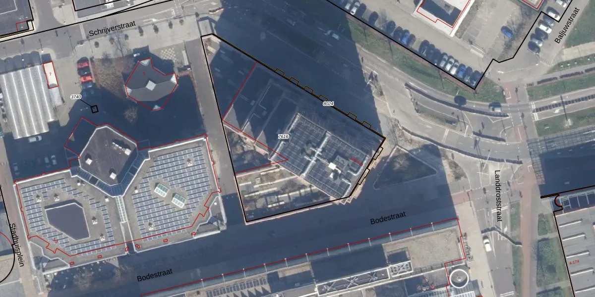 Het perceel waarop Bodestraat 263 staat heeft een oppervlakte van 2046 m². Dit is een zeer groot perceel. De perceeloppervlakte wordt geregistreerd door het Kadaster. Gedetailleerde informatie over de maten van dit perceel kunt u vinden in het rapport Kadastrale kaart met maatvoering van Bodestraat 263.