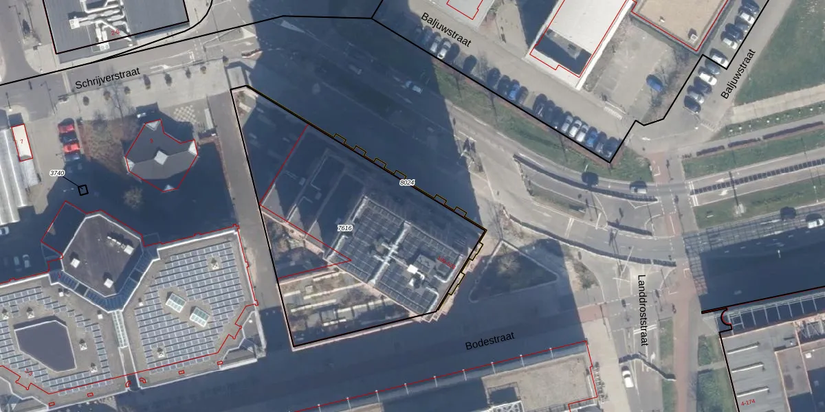 Het perceel waarop Bodestraat 279 staat heeft een oppervlakte van 2046 m². Dit is een zeer groot perceel. De perceeloppervlakte wordt geregistreerd door het Kadaster. Gedetailleerde informatie over de maten van dit perceel kunt u vinden in het rapport Kadastrale kaart met maatvoering van Bodestraat 279.