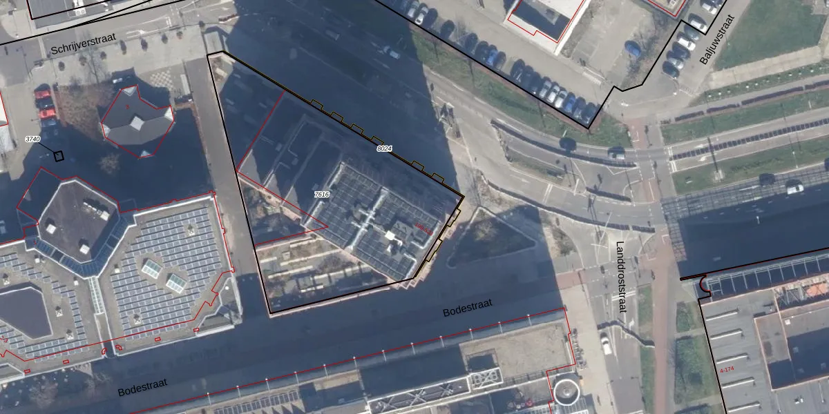 Het perceel waarop Bodestraat 301 staat heeft een oppervlakte van 2046 m². Dit is een zeer groot perceel. De perceeloppervlakte wordt geregistreerd door het Kadaster. Gedetailleerde informatie over de maten van dit perceel kunt u vinden in het rapport Kadastrale kaart met maatvoering van Bodestraat 301.