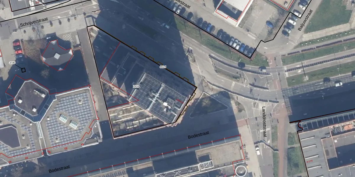 Het perceel waarop Bodestraat 321 staat heeft een oppervlakte van 2046 m². Dit is een zeer groot perceel. De perceeloppervlakte wordt geregistreerd door het Kadaster. Gedetailleerde informatie over de maten van dit perceel kunt u vinden in het rapport Kadastrale kaart met maatvoering van Bodestraat 321.