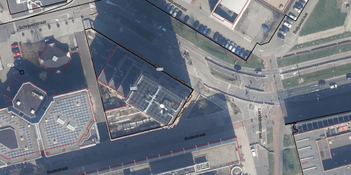 Het perceel waarop Bodestraat 341 staat heeft een oppervlakte van 2046 m². Dit is een zeer groot perceel. De perceeloppervlakte wordt geregistreerd door het Kadaster. Gedetailleerde informatie over de maten van dit perceel kunt u vinden in het rapport Kadastrale kaart met maatvoering van Bodestraat 341.
