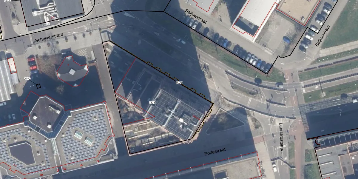 Het perceel waarop Bodestraat 359 staat heeft een oppervlakte van 2046 m². Dit is een zeer groot perceel. De perceeloppervlakte wordt geregistreerd door het Kadaster. Gedetailleerde informatie over de maten van dit perceel kunt u vinden in het rapport Kadastrale kaart met maatvoering van Bodestraat 359.