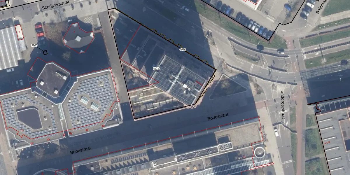 Het perceel waarop Bodestraat 365 staat heeft een oppervlakte van 2046 m². Dit is een zeer groot perceel. De perceeloppervlakte wordt geregistreerd door het Kadaster. Gedetailleerde informatie over de maten van dit perceel kunt u vinden in het rapport Kadastrale kaart met maatvoering van Bodestraat 365.