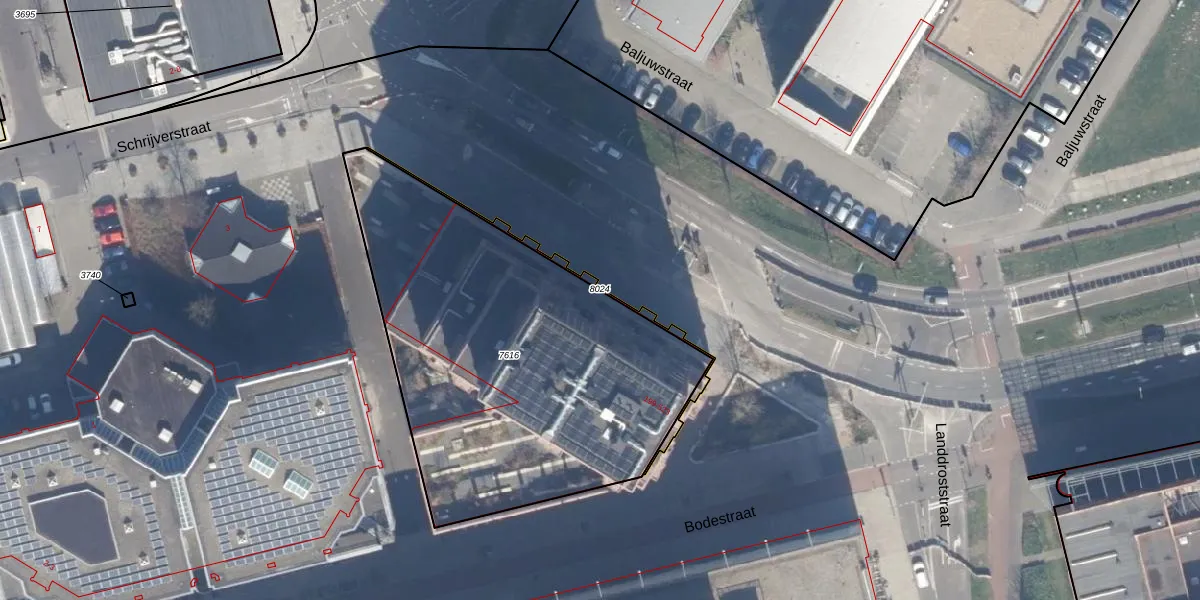Het perceel waarop Bodestraat 375 staat heeft een oppervlakte van 2046 m². Dit is een zeer groot perceel. De perceeloppervlakte wordt geregistreerd door het Kadaster. Gedetailleerde informatie over de maten van dit perceel kunt u vinden in het rapport Kadastrale kaart met maatvoering van Bodestraat 375.