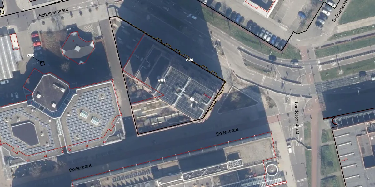 Het perceel waarop Bodestraat 397 staat heeft een oppervlakte van 2046 m². Dit is een zeer groot perceel. De perceeloppervlakte wordt geregistreerd door het Kadaster. Gedetailleerde informatie over de maten van dit perceel kunt u vinden in het rapport Kadastrale kaart met maatvoering van Bodestraat 397.