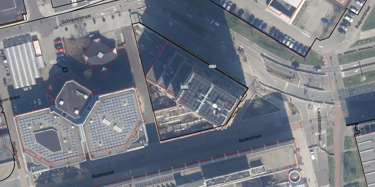 Het perceel waarop Bodestraat 415 staat heeft een oppervlakte van 2046 m². Dit is een zeer groot perceel. De perceeloppervlakte wordt geregistreerd door het Kadaster. Gedetailleerde informatie over de maten van dit perceel kunt u vinden in het rapport Kadastrale kaart met maatvoering van Bodestraat 415.